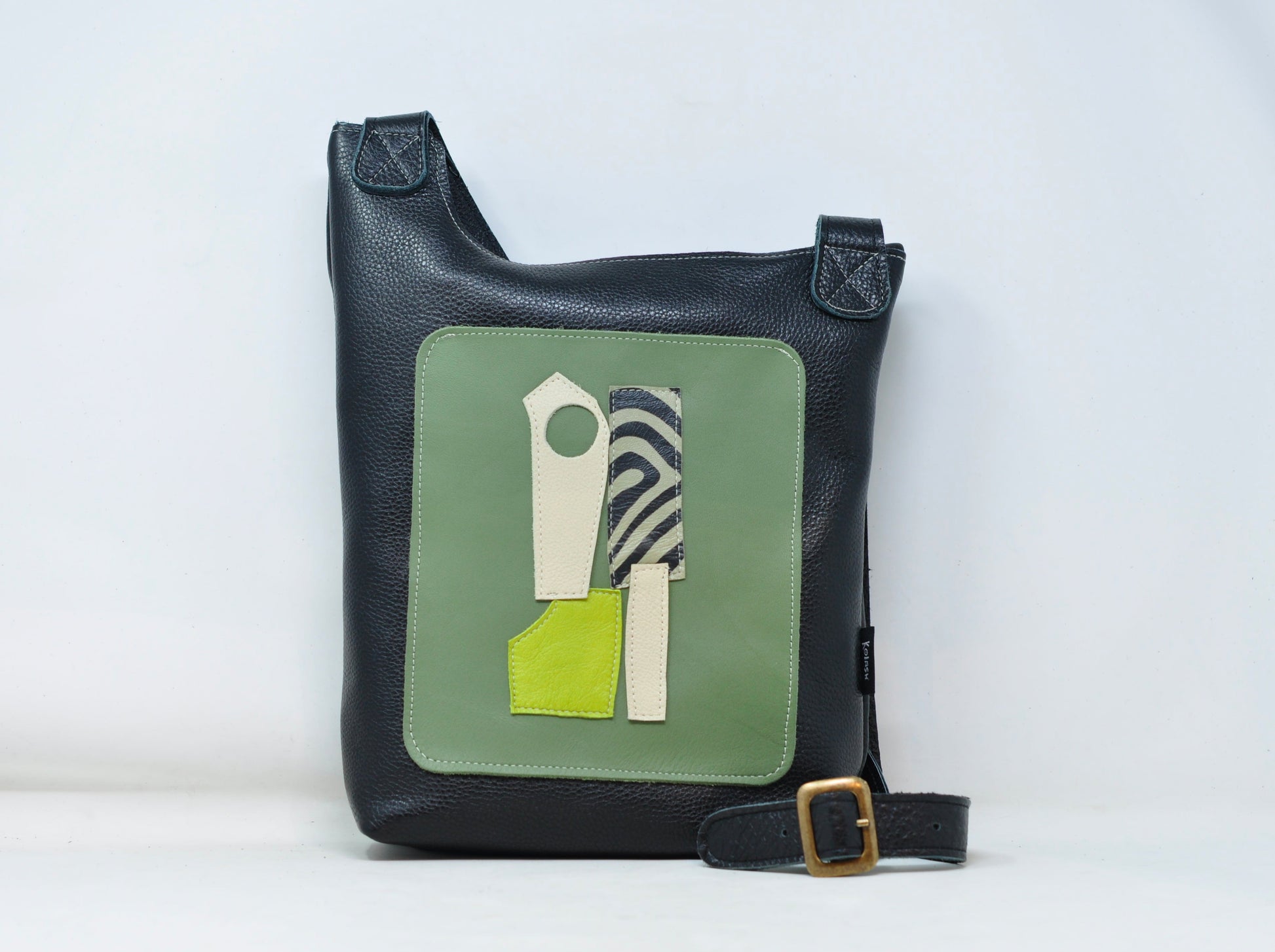 Bolso de hombro hecho a mano en cuero vacuno. Urbanita es una de nuestras bandoleras más originales y otro de nuestros modelos icónicos, cómoda, ideal para el diía a día, su cierre principal es con cremallera, bolsillo interior con cremallera y bolsillo exterior delantero; el asa es ajustable con hebilla acabada en oro viejo. Pieza única.